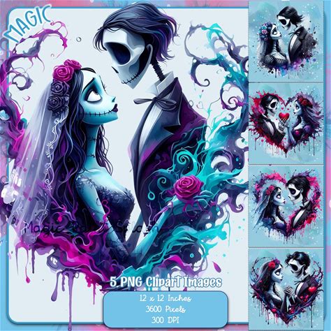 Corpse Bride Watercolor Clipart, Gothic Romance Images (PNG)