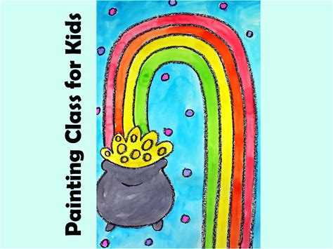 POT O' GOLD With RAINBOW | Kid's Video Art Lesson | Easy Drawing & Watercolor Painting Project For Beginners | St. Patrick's Day Tutorial